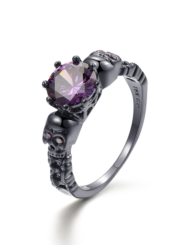 Anillo de circonita morada con calavera punk