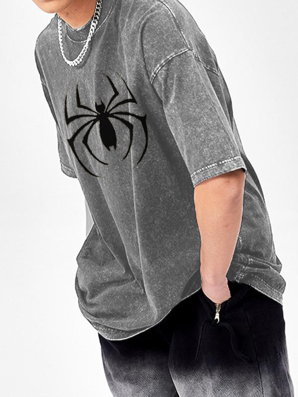 Camiseta extragrande de manga corta con diseño de araña lavada para hombre