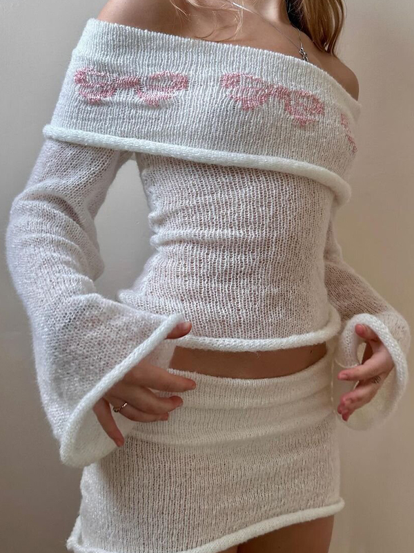 Jersey de punto con mangas largas y estampado floral y un solo hombro con mangas acampanadas