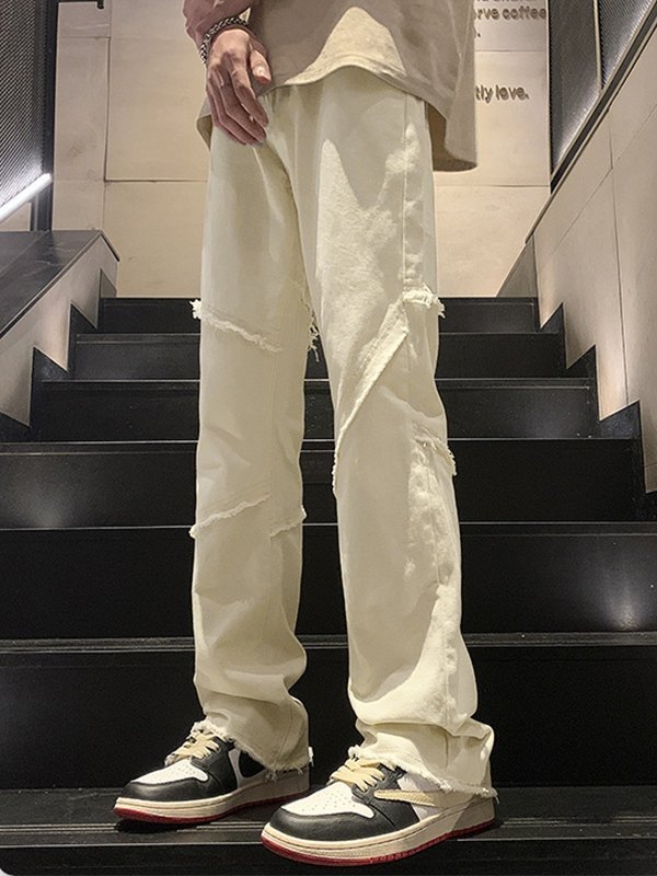 Vaqueros rectos con paneles deshilachados para hombre