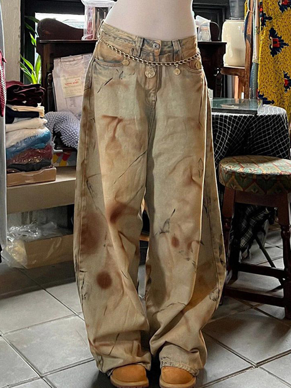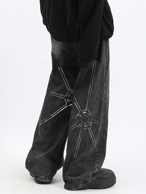 Vaqueros holgados con estampado de telaraña lavados para hombre