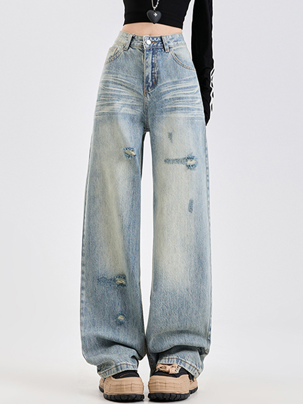 Vaqueros boyfriend desgastados, estilo retro, de estilo high street
