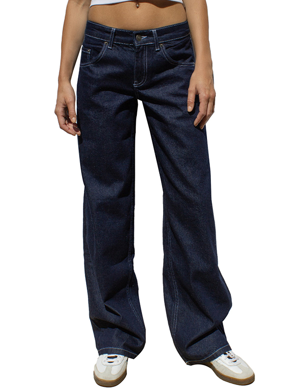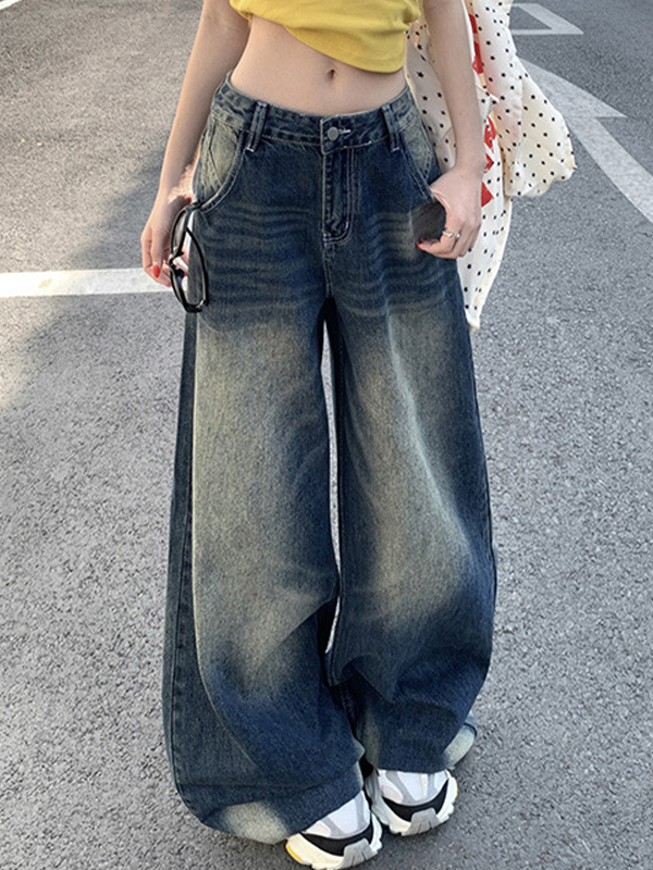 Vaqueros rectos y holgados con bigotes de gato estilo retro americano