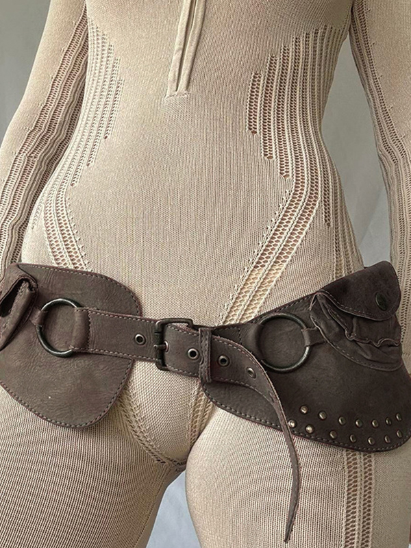 Cinturón irregular con remaches y costuras de aro retro