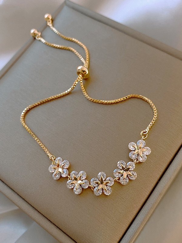 Pulsera dorada ajustable floral con diamantes de imitación