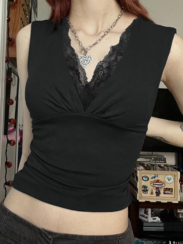 Camiseta sin mangas con escote en V y parches de encaje