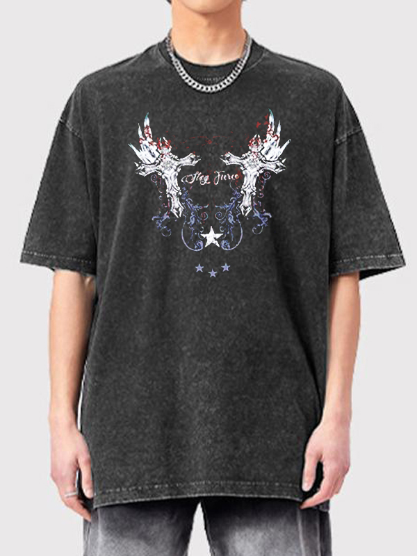 Camiseta extragrande de manga corta con estampado oscuro para hombre