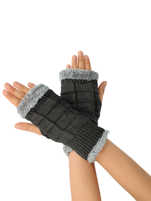 Guantes de punto sin dedos gruesos y cálidos con forro polar
