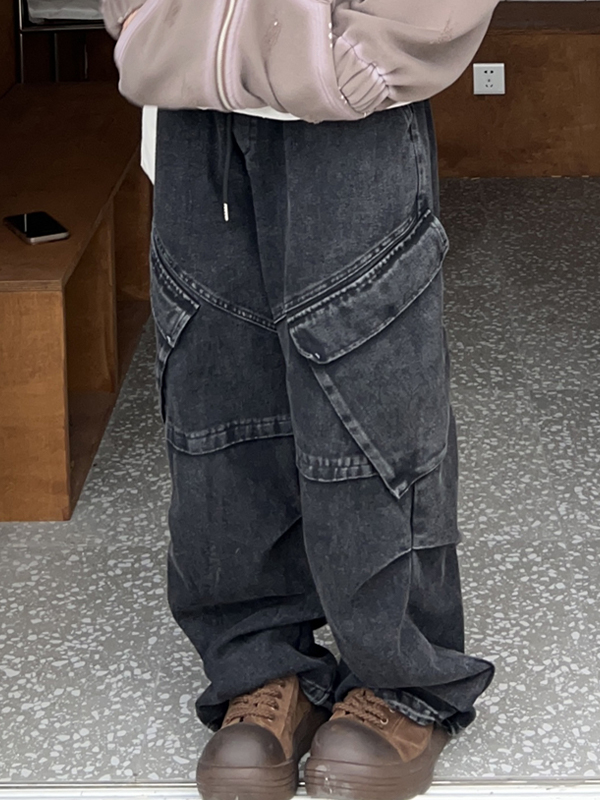 Pantalones vaqueros cargo de alta elasticidad con múltiples bolsillos y estilo de ropa de trabajo