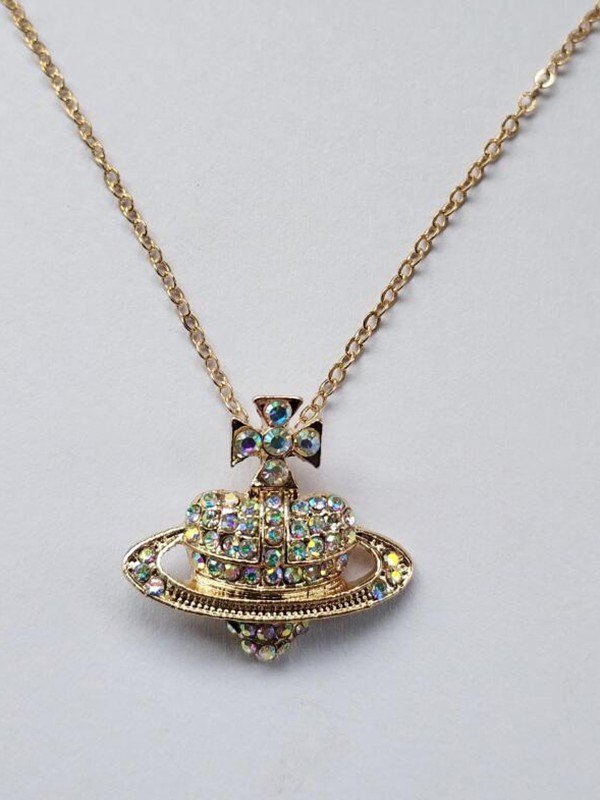 Collar con dije de planeta y corazón de diamantes de imitación