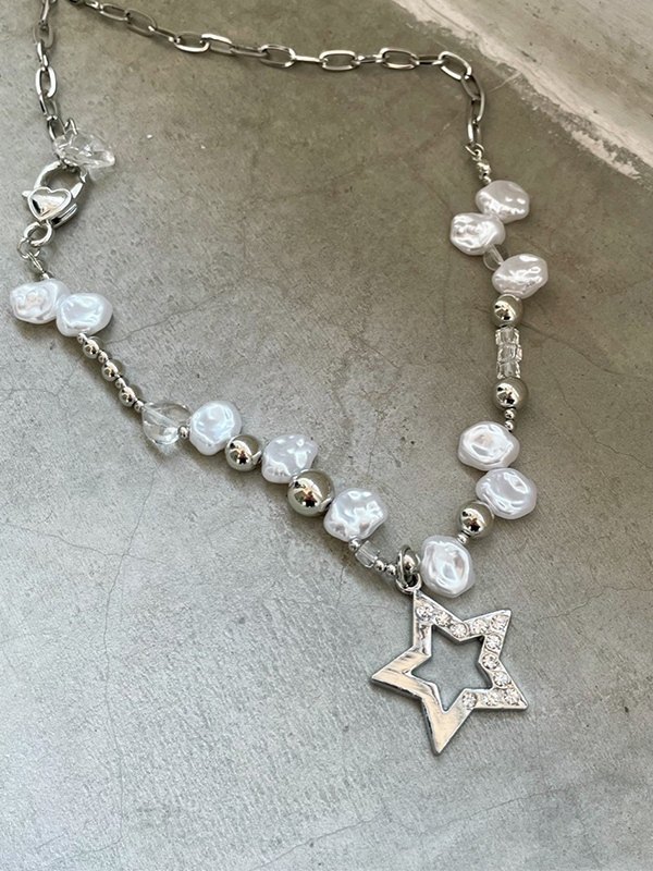 Collar de cadena de cuentas de estrella de diamantes de imitación