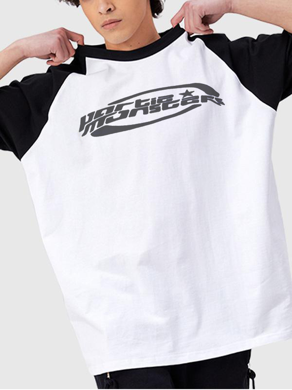 Camiseta de manga corta con estampado de manga raglán para hombre