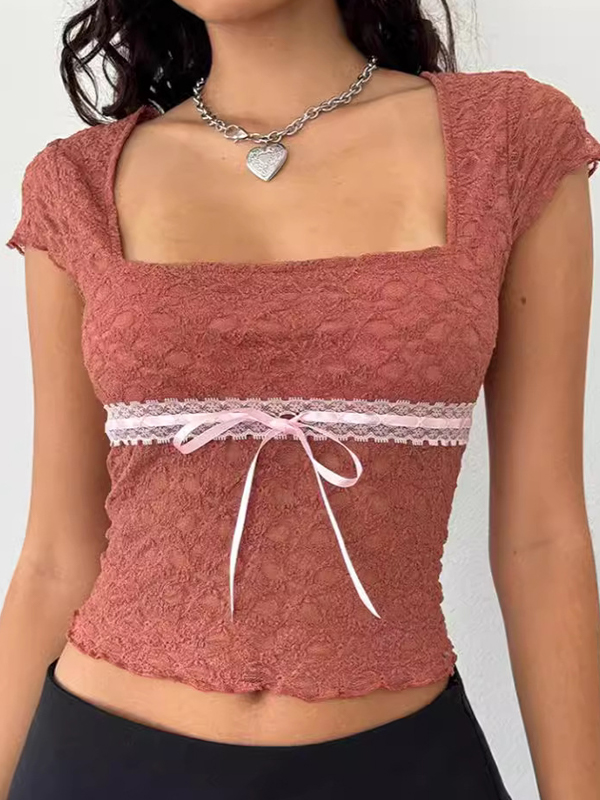 Camiseta de manga corta con encaje