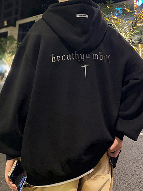 Sudadera con capucha extragrande con adornos bordados para hombre
