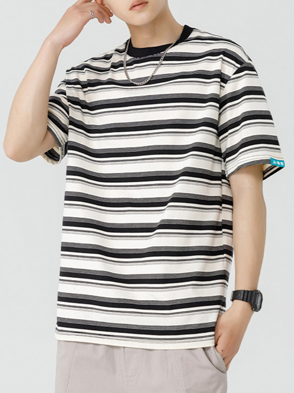 Camiseta extragrande de manga corta con estampado de rayas para hombre