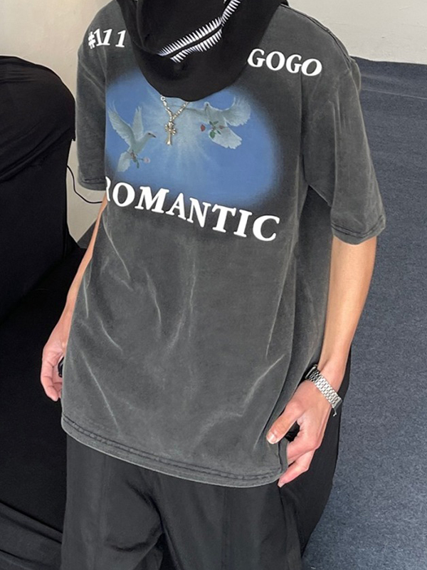 Camiseta de manga corta suelta estampada para hombre
