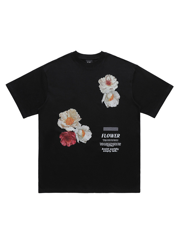 Camiseta extragrande de manga corta con estampado de flores para hombre