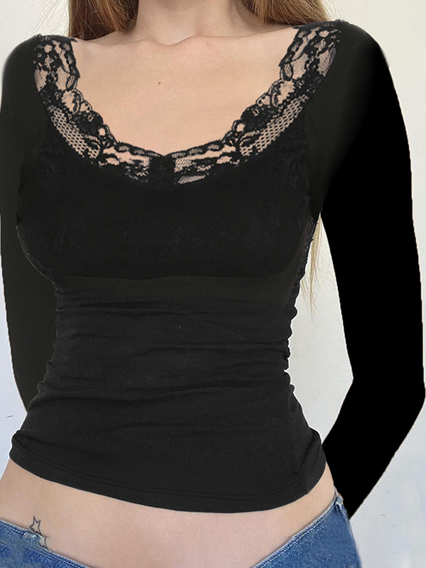 Camiseta de manga larga con encaje