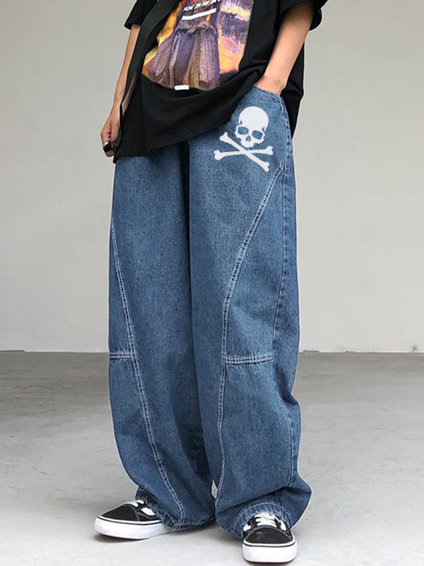 Vaqueros holgados informales con estampado de calavera para hombre
