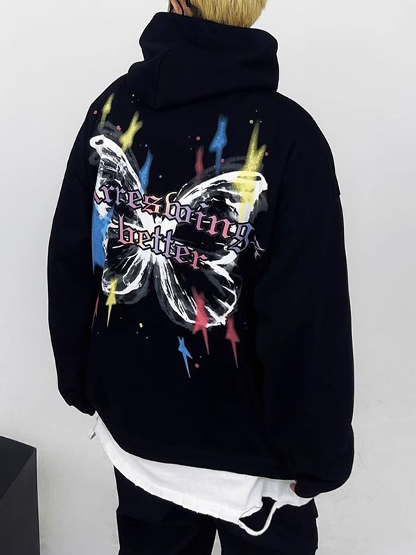 Sudadera con capucha extragrande con estampado de mariposas y estrellas coloridas de Street para hombre
