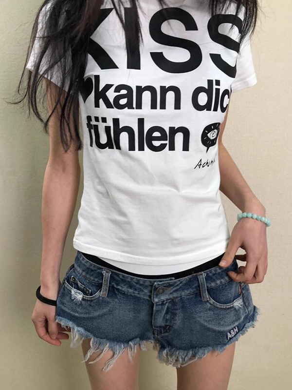 Camiseta de manga corta con estampado de letras retro