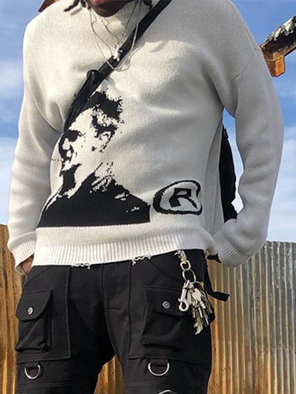 Chaqueta de punto con cremallera y diseño andrajoso de empalme para hombre