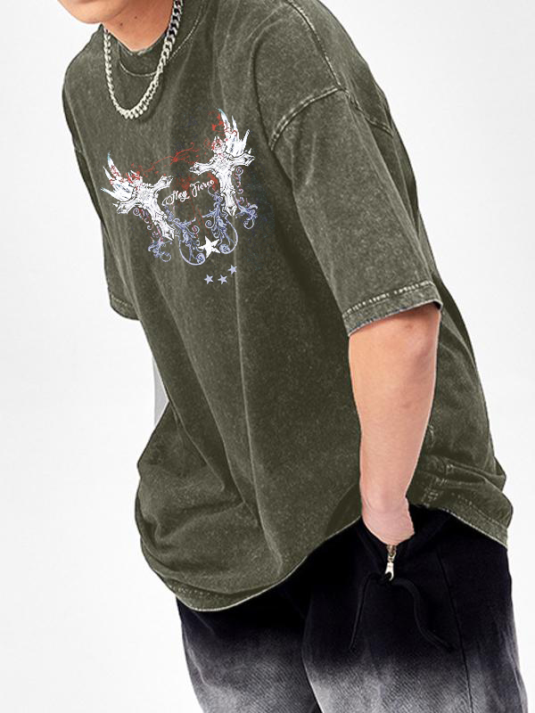 Camiseta extragrande de manga corta con estampado oscuro para hombre