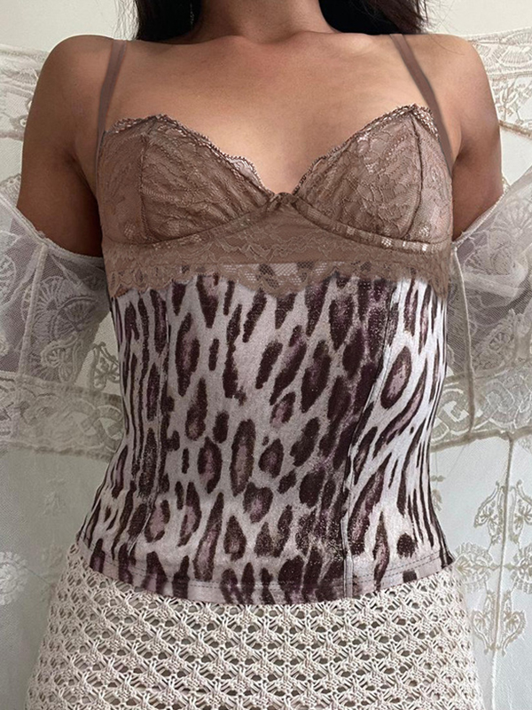Camiseta holgada con hombros descubiertos, estampado de leopardo y diamantes de imitación en color contrastante