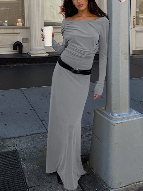 Elegantes vestidos largos plisados con hombros descubiertos