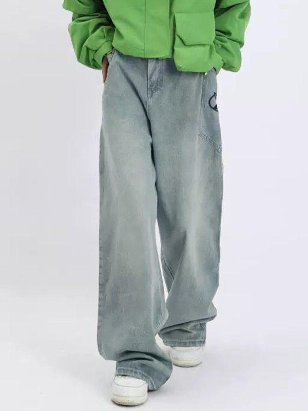 Estampado y diseño de bolsillo únicos: estos jeans presentan un estampado simple en un bolsillo grande irregular, lo que agrega un detalle interesante y llamativo al diseño general.