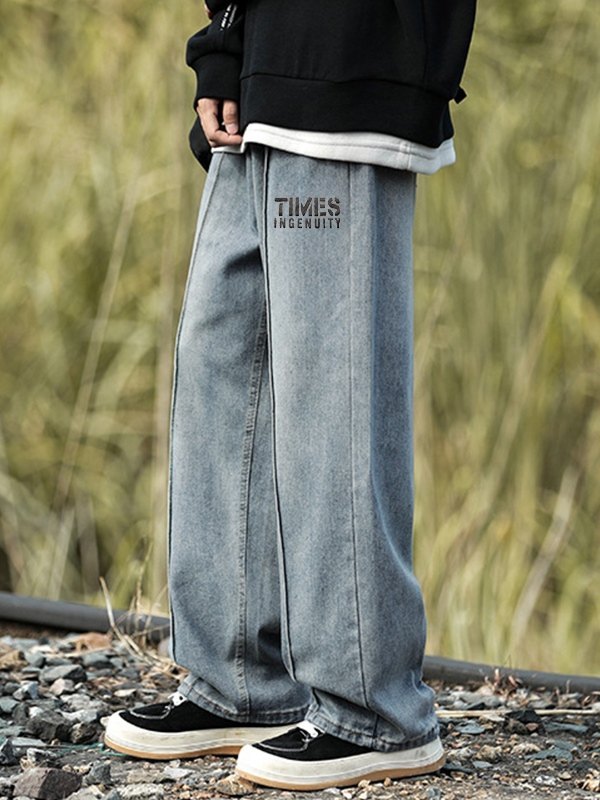 Descripción: En la parte delantera tiene un diseño de costura expuesta, presenta letras en contraste estampado, con bolsillos funcionales, costura plisada en la espalda y bragueta con cremallera con botones metálicos.