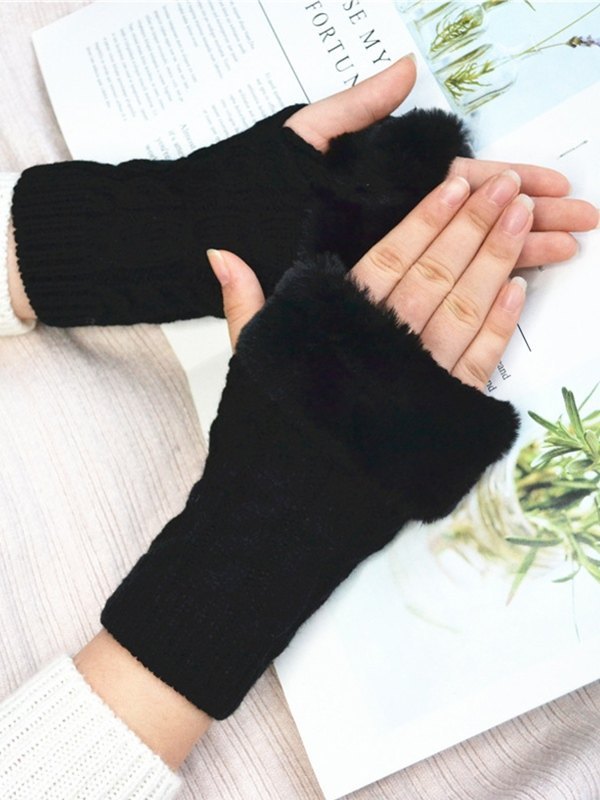 Guantes sin dedos tejido trenzado con ribete de piel sintética