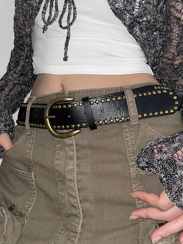 Cinturón de hebilla de decoración de remache vintage de color sólido