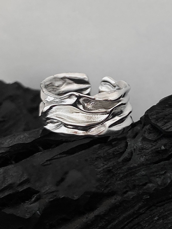 Anillo de puño texturizado plateado de 2 piezas para hombre
