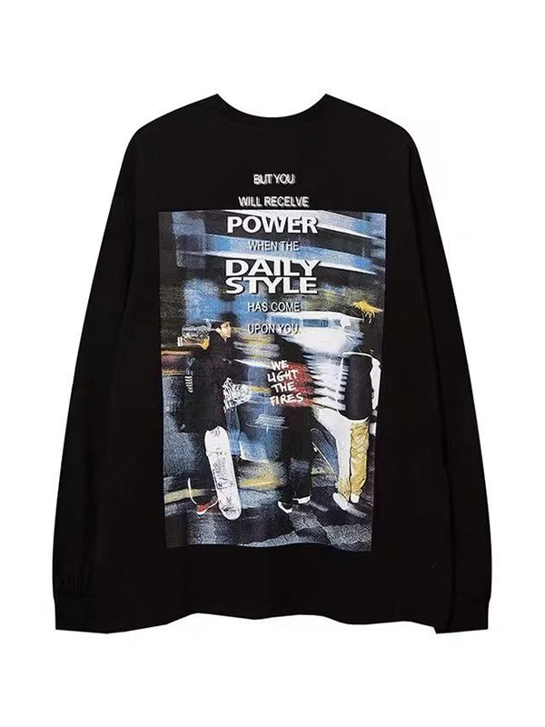 Camiseta holgada informal de manga larga negra con estampado de araña