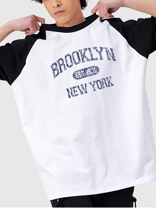 Camiseta extragrande de manga corta con estampado de letras y manga raglán para hombre
