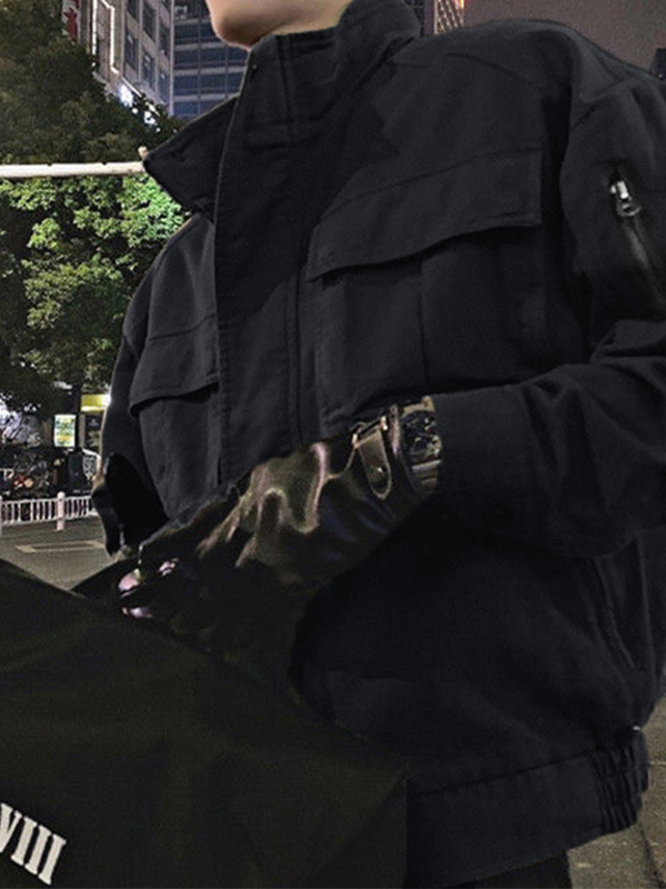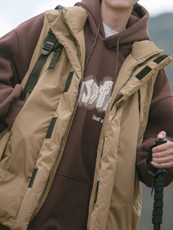 Chaqueta con capucha y cremallera doble unicolor para hombre