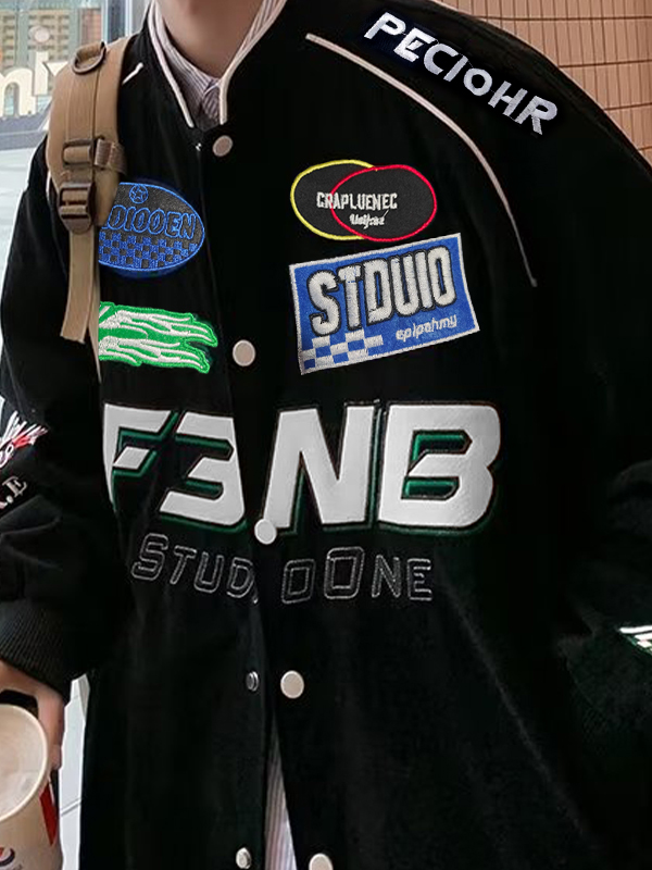 Chaqueta universitaria de cuero sintético bordado para hombre