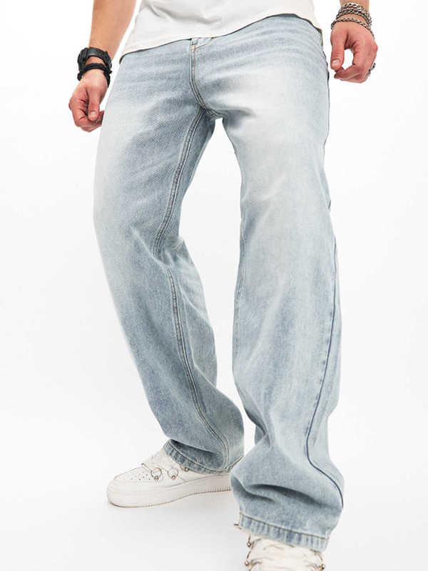 Vaqueros holgados desgastados con parches descoloridos para hombre