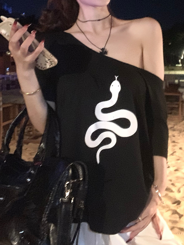 Camiseta de manga corta de gran tamaño con estampado de serpiente