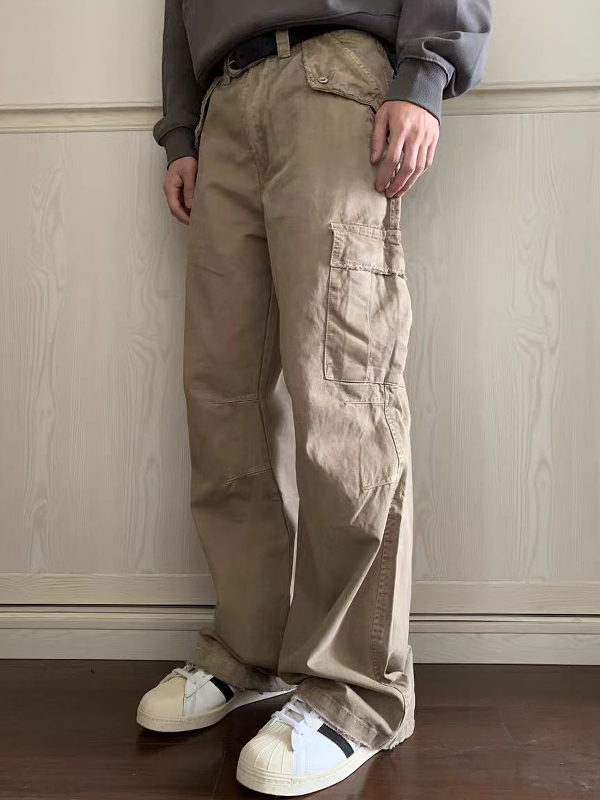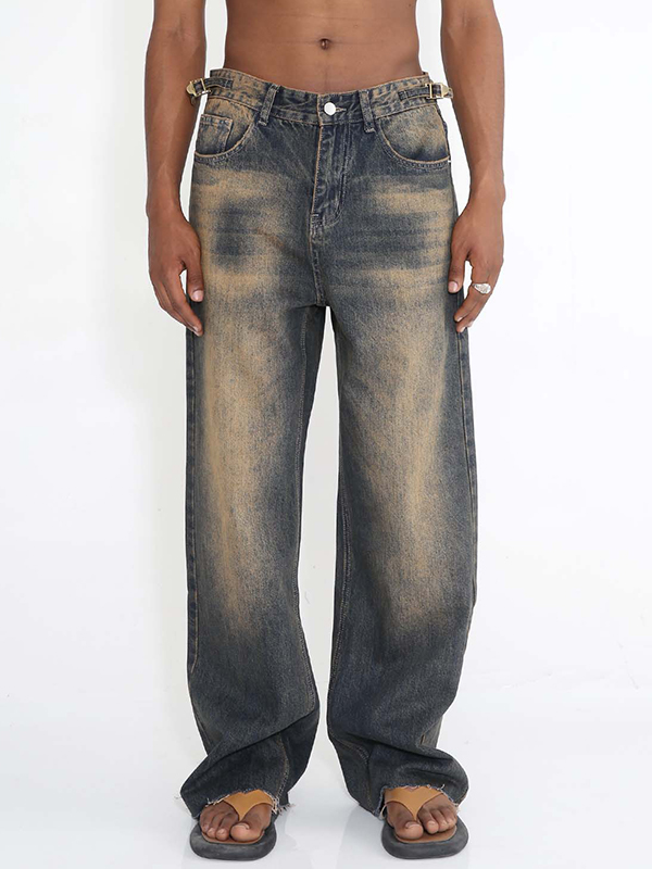 Vaqueros de pierna recta con ribete crudo desgastados vintage para hombre