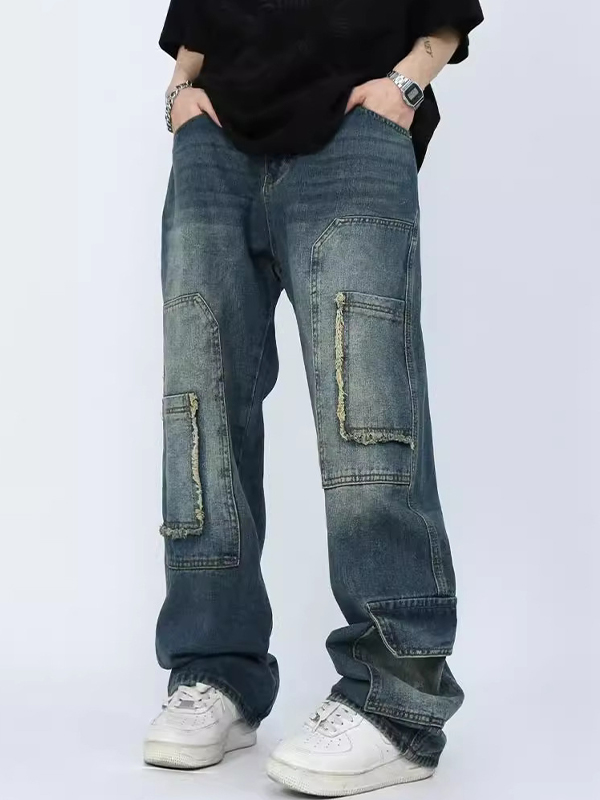 Vaqueros sueltos rasgados azules vintage desgastados para hombre