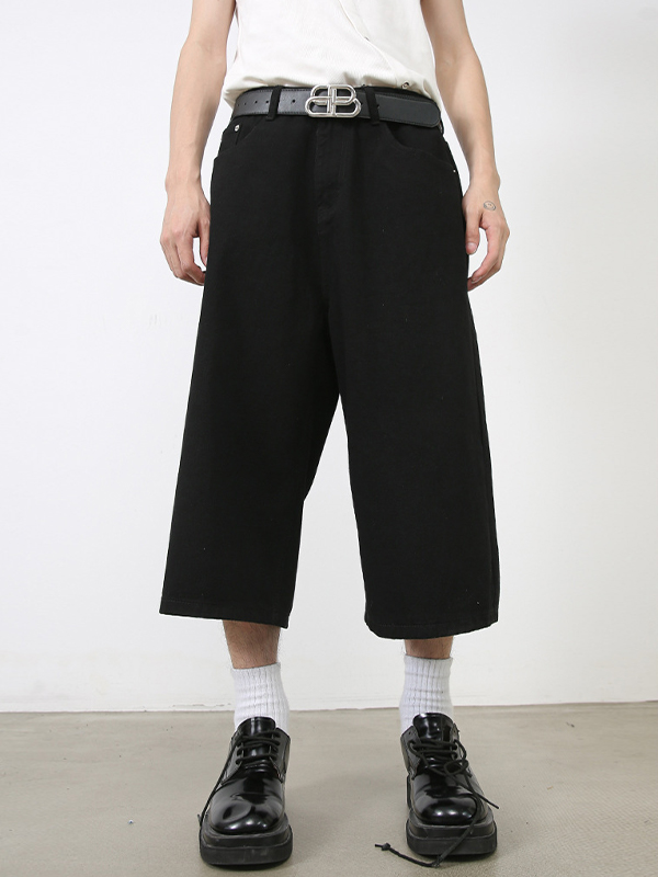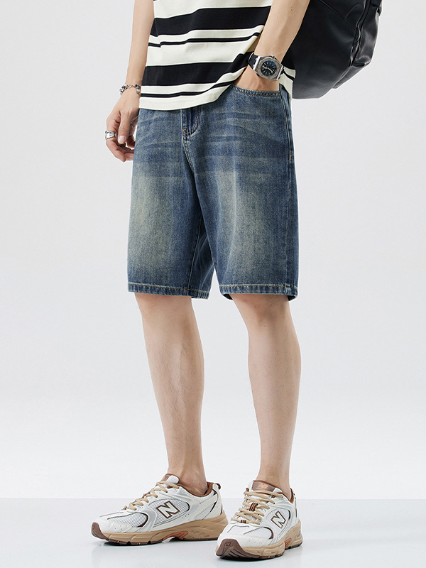 Pantalones cortos de mezclilla rectos de pierna ancha lavados retro para hombre