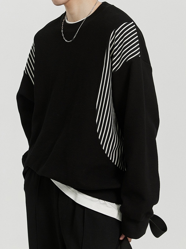 Suéter con cuello redondo y empalme de rayas para hombre