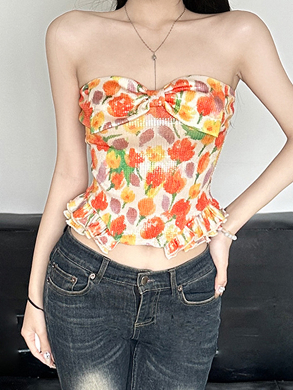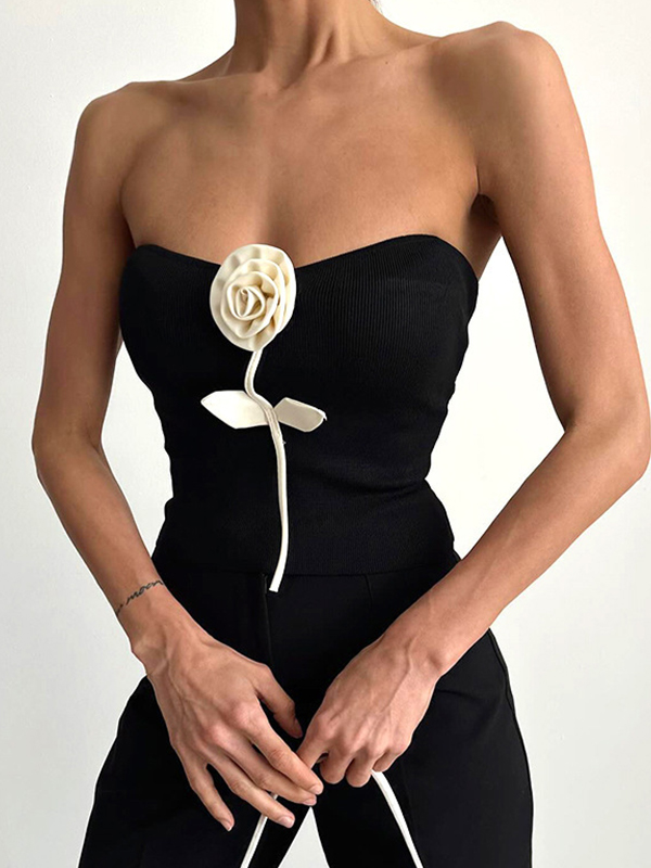 Top bandeau con decoración floral tridimensional de nicho