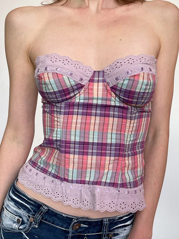 Top bandeau con busto de patchwork y encaje estilo adolescente