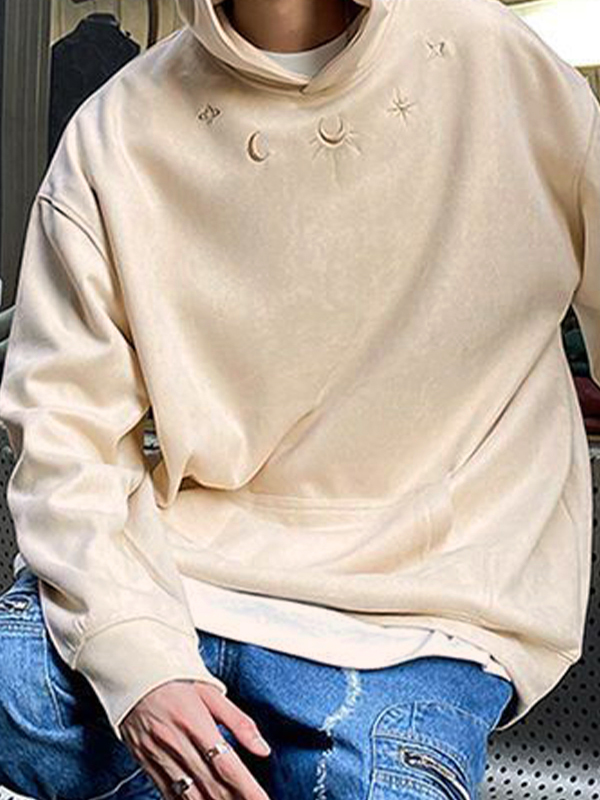 Sudadera con capucha extragrande con bordado de luna y estrella de ante para hombre