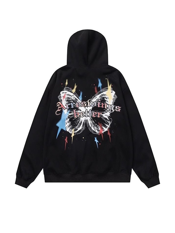Único Diseño: la sudadera con capucha presenta un vibrante estampado de mariposas y estrellas, agregando un toque de estilo urbano y vintage a tu atuendo.