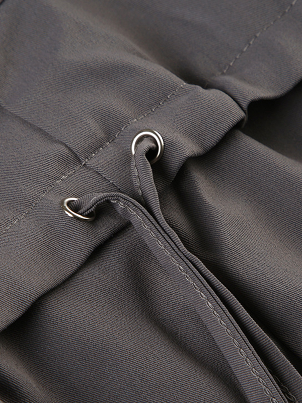 Pantalones de trabajo informales de cintura alta, multibolsillos, con cordón, holgados y de pierna recta.
