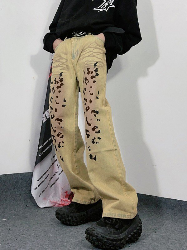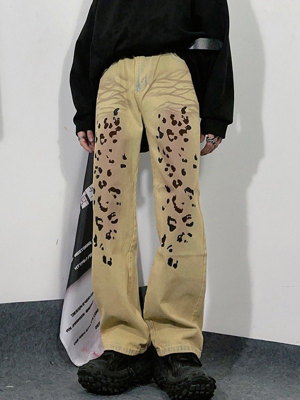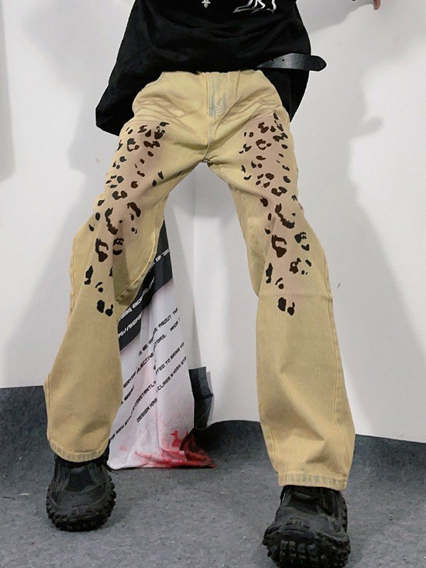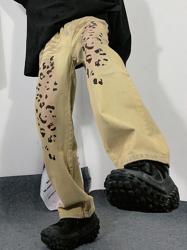 Vaqueros rectos de leopardo con lavado vintage para hombre